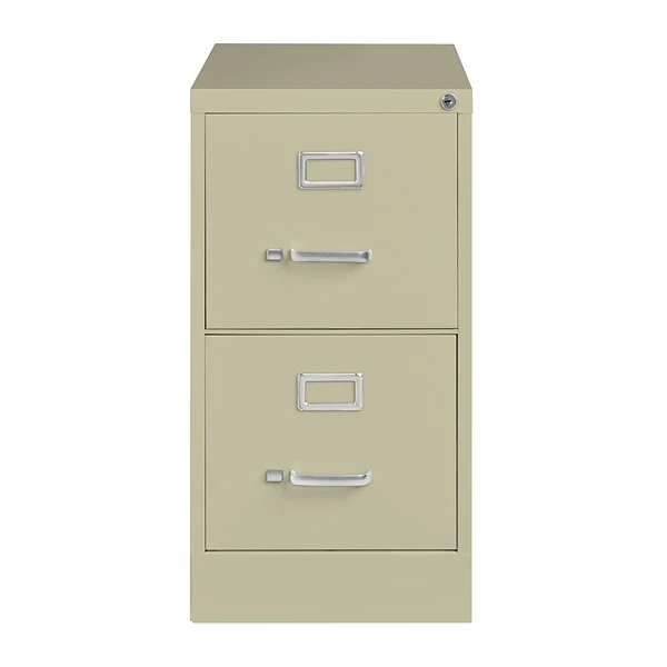 - Two drawer commercial grade vertical filing cabinet that accommodates letter-size hanging file folders