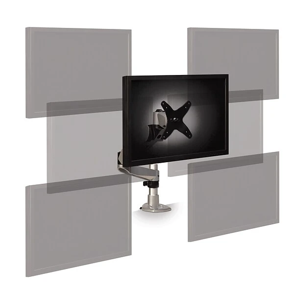 Highly adjustable arm moves smoothly up and down through 10.6 in height adjustment range with just a touch. Arm also moves in and out and side to side with ease so you can move your monitor out of the way when not in use or share your screen with others.
