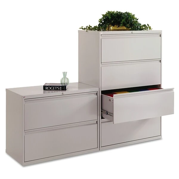 - 4 drawer lateral file accommodates letter and legal size hanging files