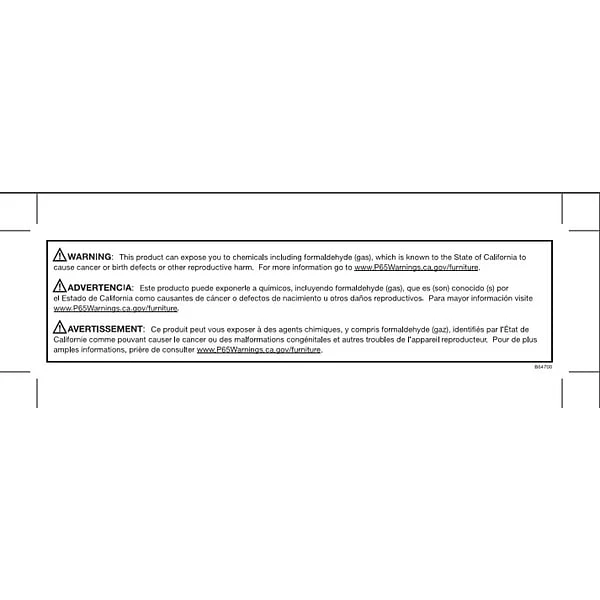 - ⚠ WARNING: This product can expose you to chemicals including formaldehyde, which is known to the State of California to cause cancer or birth defects or other reproductive harm. For more information go to www.P65Warnings.ca.gov/furniture.