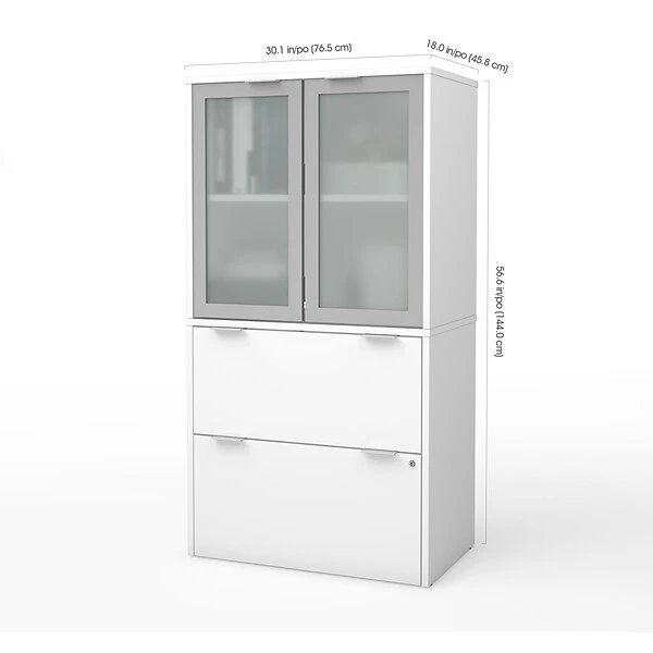 - The storage cabinet has one fix shelf covered by frosted glass doors