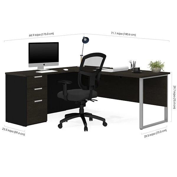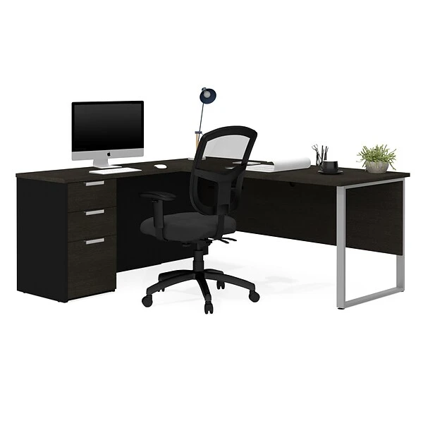 - The pedestal offers 2 utility drawers and one file drawer with letter/legal filing system