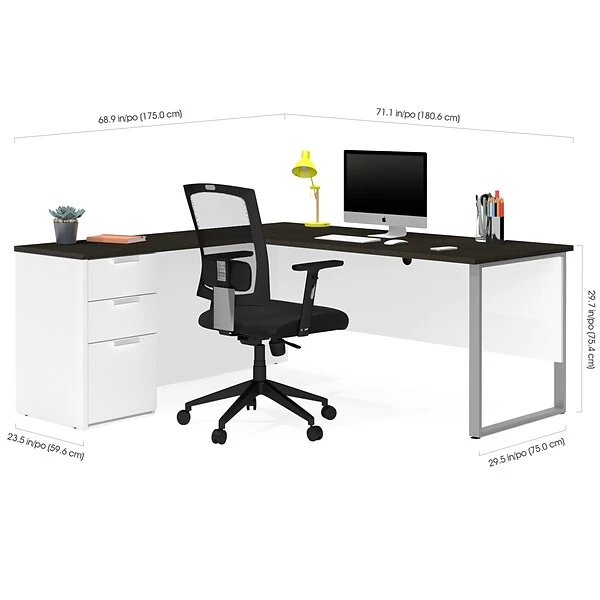 - The pedestal offers 2 utility drawers and one file drawer with letter/legal filing system