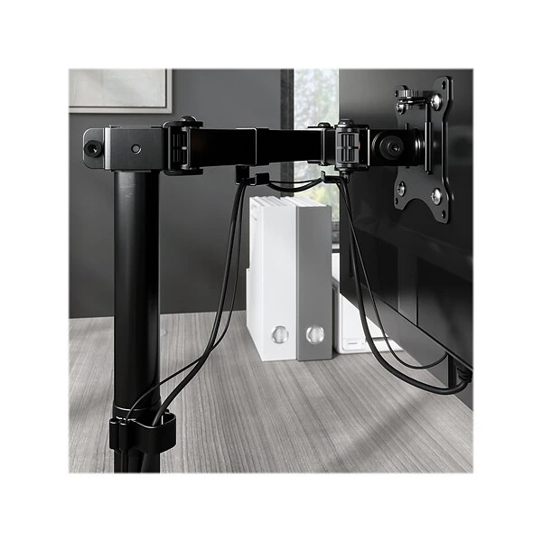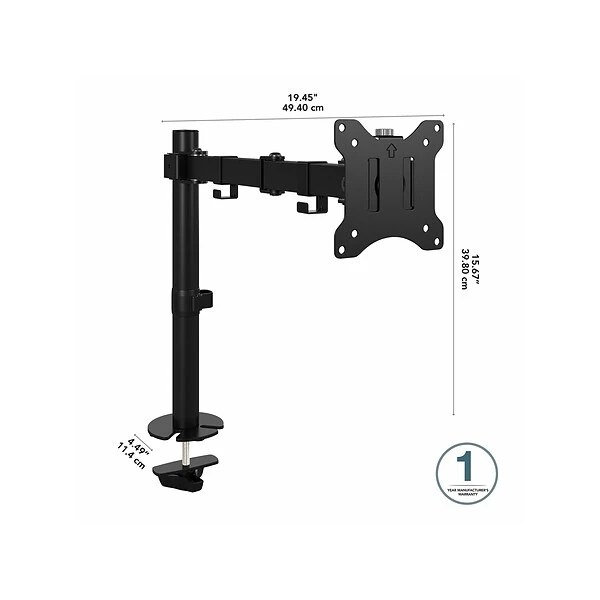 Give your back and neck a break by lifting, tilting, swiveling, and rotating your computer monitor into the perfect position for long-lasting ergonomic comfort. This adjustable monitor arm desk mount features a sleek satin black finish that suits any office environment and is backed by a 1-year manufacturer warranty.