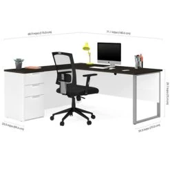 - Durable computer desk surface supports materials and equipment with a weight capacity of 200 lbs.
