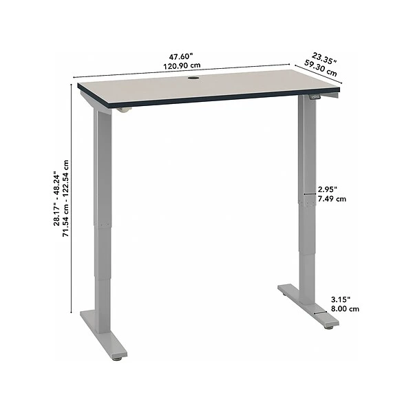 Bush Business Furniture’s Move 40 Height Adjustable Standing Desk is a perfect way to build an ergonomic workspace without the high-end price tag. Give your body and mind a break from sedentary work and enjoy a healthier, more productive office with the push of a button. Three stage units lift the 48W x 24D desktop anywhere from 28 to 48 inches at a speed of 1.25 inches per second so you can change positions without missing a beat. The Adjustable Desk also features an Anti-Collision Sensor that stops movement up or down if an object is detected. Available in a contemporary White Spectrum finish, the durable thermally fused laminate surface resists scratches and stains while a welded 16 gauge steel base allows the desktop to support up to 176 pounds. This Sit-Stand Desk is tested to meet ANSI/BIFMA standards for safety and performance and is backed by a 5 Year Manufacturer’s Warranty.