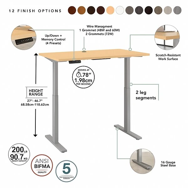Bush Business Furniture Move 60 Series 27”-47” Adjustable Standing Desk, Natural Maple (M6S7230ACSK)