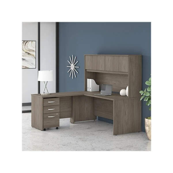 Choose the Bush Business Furniture Studio C 72″W office desk for a durable design that works hard for years with a fresh finish that looks great anywhere. A thick surface, an extended modesty panel, and clean lines convey a classic look that’s available in several contemporary or traditional finishes to fit any workspace. The thermally fused laminate finish, durable edge banding, and sturdy end panels resist scratches, stains, and dents while standing up to the rigors of a 40-plus hour work week. Keep pesky computer cords out of your way with an integrated cable management system for an organized work surface. This computer desk is backed by a 10-year manufacturer’s warranty and meets ANSI/BIFMA quality test standards for safety and performance. See the full collection for coordinating items available to make your office your own with Studio C. American made with U.S. and imported parts.