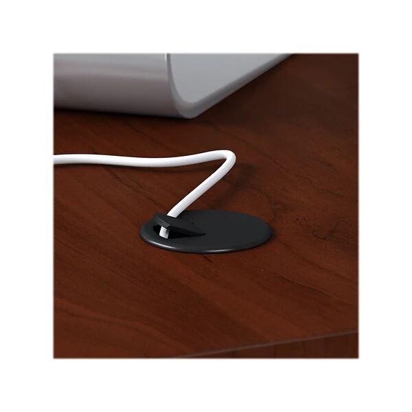 - Desk surface offers space to spread out together with the integrated cable management to conceal computer cords