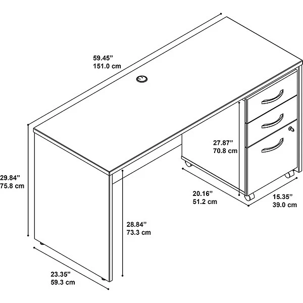 The options are endless with Bush Business Furniture Series C. Get started with this 60W Office Desk, or expand your workspace as required with a complete line of coordinated products and accessories. This commercial-grade Desk boasts quality craftsmanship, a sturdy construction, thermally fused laminate finish and rugged edge banding for years of reliability. Depend on the convenient Mobile File Cabinet for storing your office supplies and documents. Slide the Cabinet under the Desk or roll it wherever you want. A full-extension file drawer makes it easy to access letter, legal and A4 documents. Brushed Nickel hardware, clean lines and extended modesty panels make a lasting impression. This affordable office furniture withstands the rigors of a 40-plus hour work week. Backed by a 10 Year Warranty. American made with U.S. and imported parts.