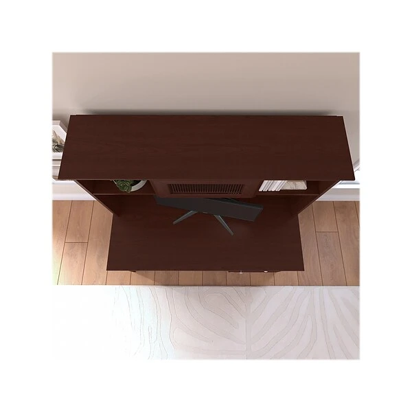 The Bush Furniture Cabot 48″W small computer desk with hutch presents a perfect home office solution for working in compact areas. Set up with your computer and all the materials you need to stay productive on a desktop that supports up to 200 lbs. The work surface also includes a built-in wire management grommet to keep pesky cords and cables out of the way while a pullout shelf conveniently stores your keyboard or laptop. Stash writing utensils, notepads, and other office supplies in the small desk’s box drawer and organize additional materials inside the lower storage cabinet. The desk hutch adds a center cabinet with a stylish fluted glass door in between two open compartments for flexible storage and display. This home office desk with storage has been tested to meet ANSI/SOHO standards for safety and performance and is backed by a 1-year manufacturer limited warranty.