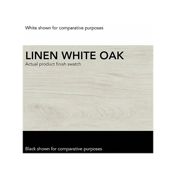 - Laminate over engineered wood in linen white oak finish
