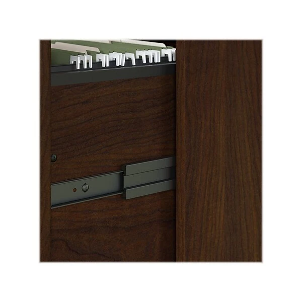 - Two file drawers open on smooth full-extension ball bearing slides for an easy reach to legal- and letter-size paperwork