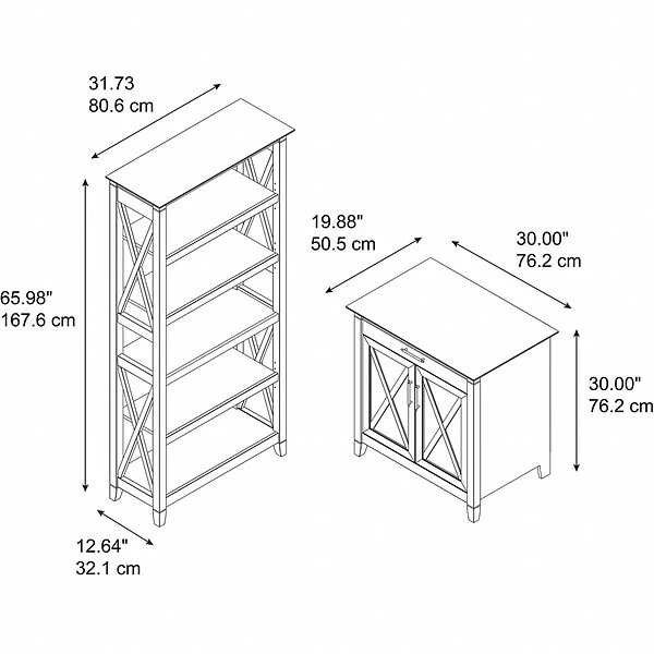 The Bush Furniture Key West Laptop Storage Desk Credenza and 5 Shelf Bookcase set offers the perfect space for your laptop, plus a storage solution that fits in any room. The convenient pull out keyboard drawer with a flip down front folds up neatly. Includes wire management and full extension ball bearing slides. Display your favorite art, photos and more on this 5 Shelf Bookcase with three adjustable shelves for flexible storage and two fixed shelves for stability. Enjoy the look of natural reclaimed wood with an authentic Bing Cherry finish, Aged Bronze hardware and an attractive post leg design. Work in style with the unique X pattern accent on the doors and airy bookcase side panels. Wall attachment hardware included. Meets ANSI/SOHO standards for safety and performance. Backed by the Bush Furniture 1 Year Manufacturer’s Warranty. See the full collection for coordinating items.