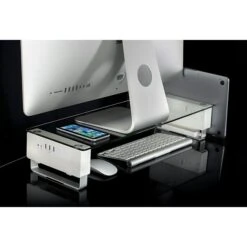 Mount-It! Tempered Glass Height Adjustable Monitor Riser With 3 USB Ports, Up To 32″, (MI-7265)