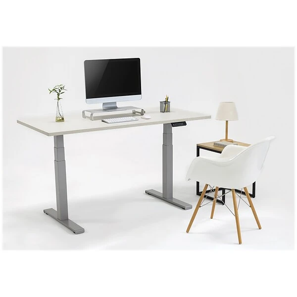 This Fellowes Cambio height-adjustable desk is a perfect addition to your home or office. Easily go from sitting to standing with a handset that features three programmable memory settings. Increase activity with optional alert to remind you to alternate between sitting and standing. The quiet yet powerful motor provides height adjustment from 24.75″ to 50.25″ with stable three-stage legs (ADA-compliant). The commercial-grade steel base holds up to 176 lbs. and provides enhanced stability. The collision detection safety feature enhances workplace safety. The high-pressure laminate (HPL) surface is easy to clean and designed to be resistant to dents/chips, UV rays, stains, and scratches.
