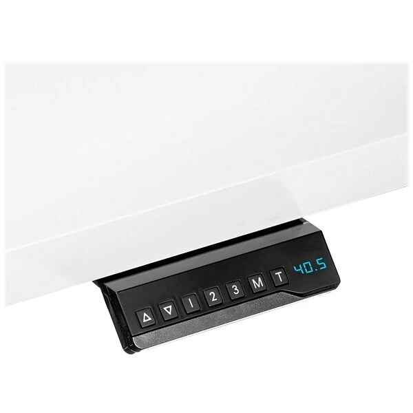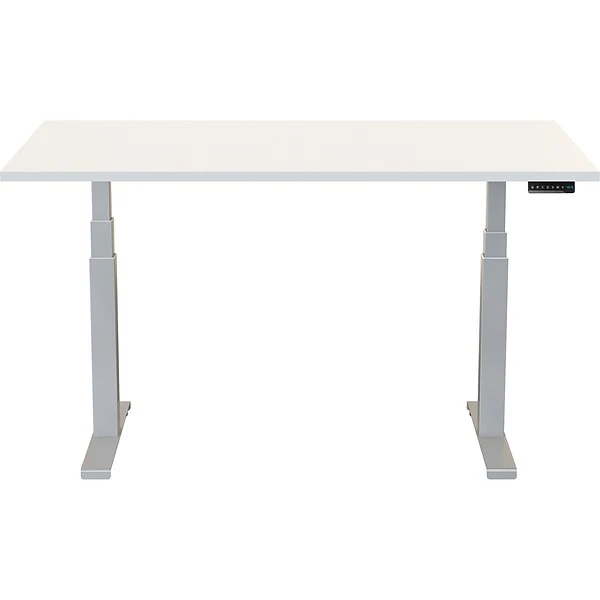 This Fellowes Cambio height-adjustable desk is a perfect addition to your home or office. Easily go from sitting to standing with a handset that features three programmable memory settings. Increase activity with optional alert to remind you to alternate between sitting and standing. The quiet yet powerful motor provides height adjustment from 24.75″ to 50.25″ with stable three-stage legs (ADA-compliant). The commercial-grade steel base holds up to 176 lbs. and provides enhanced stability. The collision detection safety feature enhances workplace safety. The high-pressure laminate (HPL) surface is easy to clean and designed to be resistant to dents/chips, UV rays, stains, and scratches. With Installation.