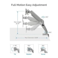 Maximize your workspace and comfort, with the easy to assemble monitor arm. This space-saving Fellowes Designer Suites Monitor Arm elevates monitors to a comfortable viewing height to prevent neck strain. It can keep monitors off crowded desktops, increasing your work area with ease. It supports 21-in. Flat panel monitors up to 20 pounds and can tilt up or down +/- 45°, pivots left to right 180°, and allows 360° screen rotation. It includes easy-to-install two-piece clamp mounts monitor between desk and cubicle wall for easy convenience.