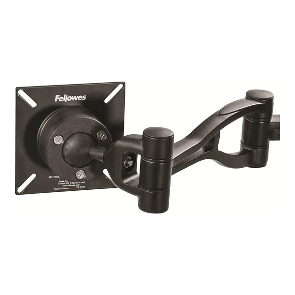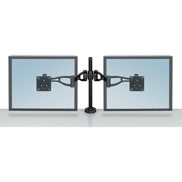 Optimize a dual-screen setup with this adjustable monitor arm. Once attached, monitors can be independently adjusted by rotating, extending, tilting, or lifting them, and screens can be rotated a full 360 degrees and elevated more than 16 inches above a desk. This Fellowes dual arm supports a total weight of 48 pounds, enough to hold two modestly sized monitors at once.