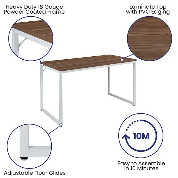 Whether you need a simple style computer desk to furnish your new office suite or are working from home this industrial style office desk offers plenty of tabletop workspace, clean lines, and an elegant modern look suitable for any professional or home decor. The ultra-strong 18 gauge metal frame is powder coated to resist damage and will support up to 250 lbs. of static weight. Adjustable floor glides to accommodate uneven flooring to give users a level work surface. No complicated setup gives you full use of your PC computer office table in about 10 minutes. Create an office, writing or study space in your loft, living room or bedroom while maintaining an open concept. This open framed office table was built for commercial settings but is well-suited for home use. With its minimalistic style, you can effortlessly convert this work desk into your game table or dining table.