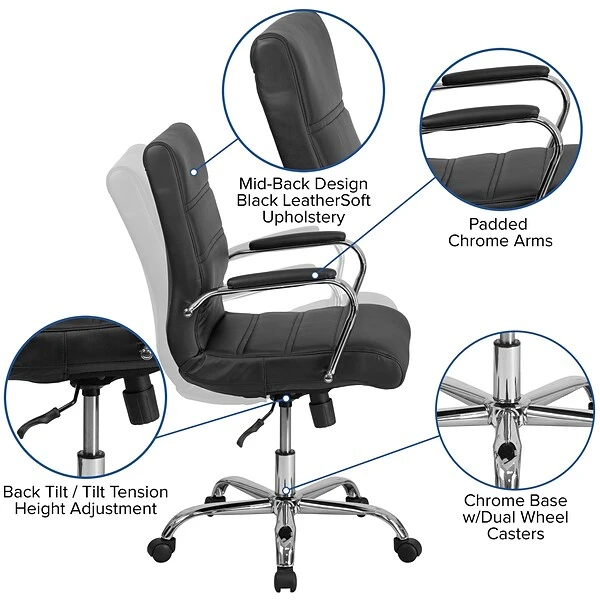 - Shiny Chrome Base and Padded Arms provide a striking visual contrast