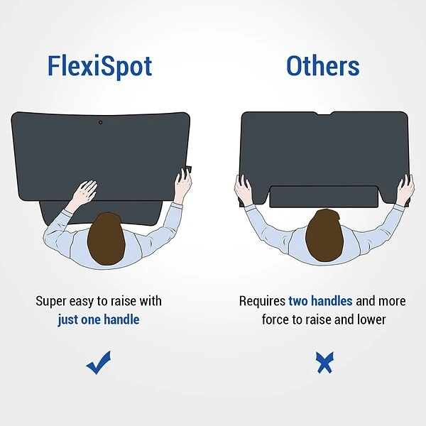 - FlexiSpot’s gas spring hovering system allows the workstation to smoothly adjust for sitting or standing
