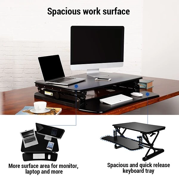 FLEXISPOT desktop risers offer deeper & larger work surface, it provides enough space to put your monitor at a comfortable reading distance. Straight up and down movement allows the workstation to smoothly adjust for sitting or standing with just a light squeeze of the handles. Our workstation rises and folds vertically, within its own footprint. There’s no need to make spatial accommodations, as may be required in comparable products. 12 height adjustment levels between sitting and standing throughout the day, support a better posture and healthy wrist and arm positions. The spacious keyboard tray offers plenty of room for using both your keyboard and mouse. Easily remove it at any time as desired. FlexiSpot workstation has undergone extensive testing for balance, stability, and movement including a fatigue test of 6,000 height adjustments.
