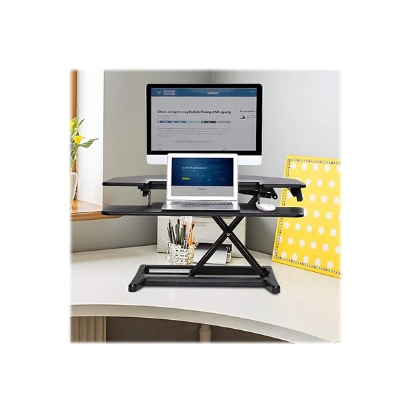 - Adjustable riser for any surface, from full desks to narrow countertops