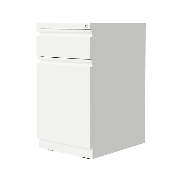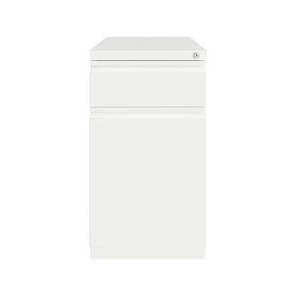 This Hirsh 19.88″ deep mobile pedestal file cabinet with a two-drawer configuration is designed to support the demand of today’s office. The backpack drawer is perfect for laptop bags and attachés. Durable, fully assembled steel construction with a nonporous surface is easy to clean and disinfect. This commercial-grade mobile pedestal comes standard with factory-installed hidden casters, full-extension drawers, counterweights, and a core-removable lock for security. The backpack drawer can also accommodate letter-size hanging files. The ball bearing suspension ensures a smooth and quiet drawer performance. Its extended front with full-width drawer pulls provides a sleek and contemporary design.