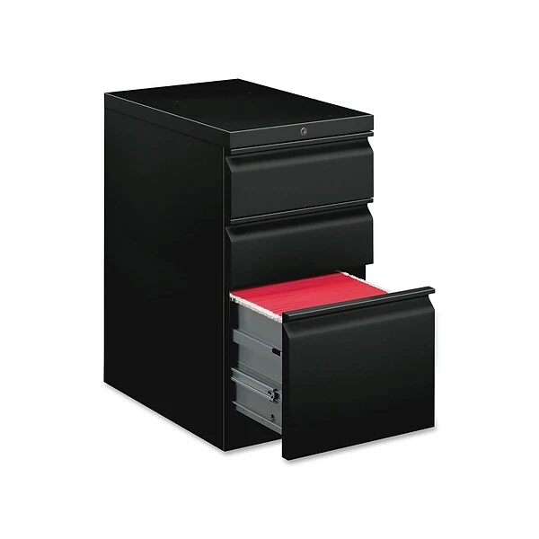 This 15″W mobile pedestal includes two box drawers for office supplies and one drawer for filling. As a cost-effective solution for desks and workstations, it increases the functionality of any size work environment and easily matches the aesthetic of other collections. Color is Black.