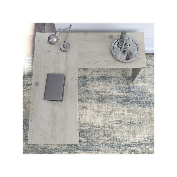 The Kathy Ireland Home by Bush Furniture Cottage Grove 60″W L-shaped desk with storage offers a personal workspace solution with appealing modern farmhouse style. Spread out with a computer, reference materials, and more on a durable corner desk surface that extends 60″ in each direction and supports up to 200 lbs. The desktop also includes built-in wire management to keep pesky cords and cables out of the way as you take on your next project or assignment. Additional materials and home office supplies can be stashed neatly inside the desk’s storage cabinet and box drawer. Save space in compact areas by placing the L-desk in a corner, or make use of the finished back to take a prominent position facing out into the room. This corner computer desk with storage has been tested to meet ANSI/SOHO standards for safety and performance and is backed by a 3-year manufacturer warranty.