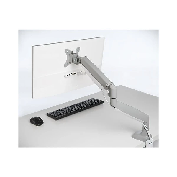 Improve posture, promote proper eye alignment, and support neck and shoulder comfort with the Kensington SmartFit One-Touch height-adjustable single monitor arm. Ergonomically designed to promote wellness and increase productivity, the SmartFit One-Touch height-adjustable single monitor arm incorporates Kensington’s patented SmartFit technology to simplify proper fit and allows users to adjust the height, depth, and angle of their monitors for individualized comfort. Stable at any monitor position, users can easily switch from landscape to portrait mode. A perfect monitor arm for the modern office and a perfect complement to the SmartFit sit/stand desk (K52804WW).