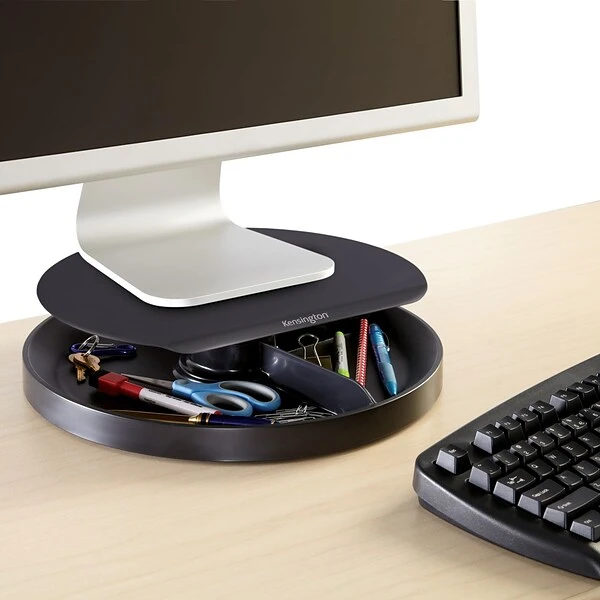 Patented 360-degree spinning carousel organizes common desktop accessories