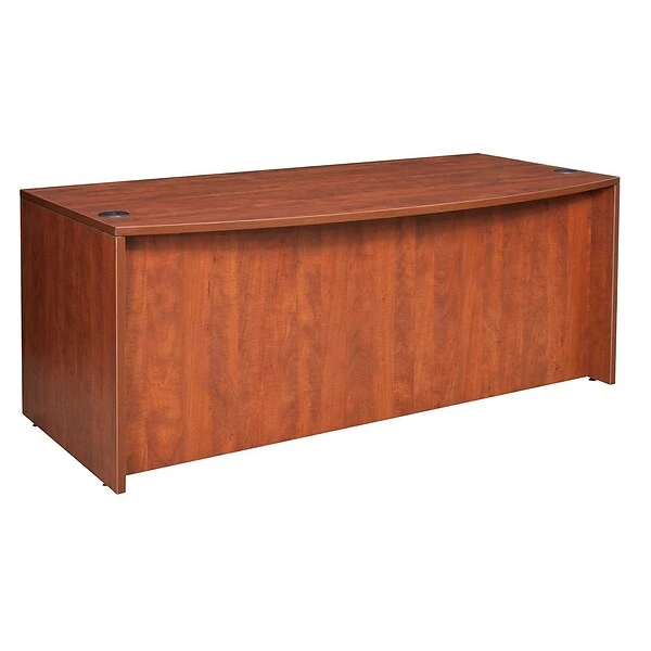 Versatility is just the beginning with so many Legacy desking options. This 71-inch double pedestal desk is a great choice for professional and home offices alike. It comes with two box-file pedestals that each have one box drawer and one file drawer that accepts both letter and legal filing. All drawers lock and include ergonomically designed drawer pulls for convenience and ease in operation. Adjustable glides on the bottom of the base keep the desktop level and are easy to adjust. Two wire management grommets keep cables clear of work areas. Finished in an attractive Cherry laminate, this desk coordinates with other Legacy furniture. The Legacy collection is constructed of a 1-inch thick thermal fused melamine laminate with a 3-millimeter commercial grade matching PVC edge. Laminates are scratch, stain and scald resistant. Legacy casegoods are backed by a 10-year limited manufacturer’s warranty.