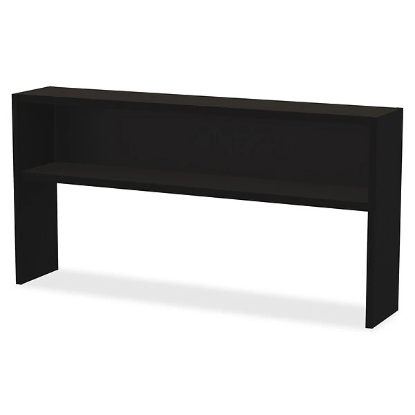 Our Modular Stack-on Hutch for a Modular Credenza in Black. Assembly required. Hardware included. Meets or exceeds ANSI/BIFMA standards and contains up to 28% recycled material.
