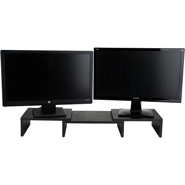 - Make the best of a messy desk with additional support and extra space for your school or work supplies using this adaptable dual-monitor riser