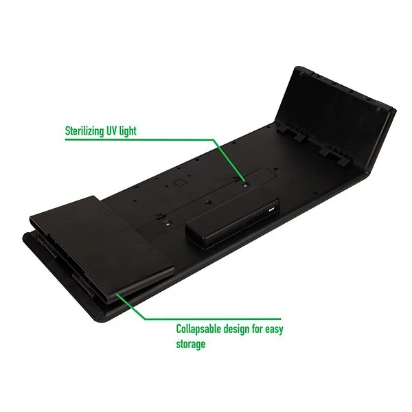 - UV light under the riser works to sterilize your keyboard, cell phone, and any other small items you place under the light