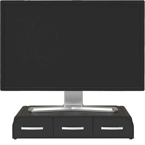 - Built-in storage minimizes messes: Do double duty with a monitor stand that also functions as a handy desk organizer with three roomy drawers with compartments for writing instruments, clips, sticky notes, and more