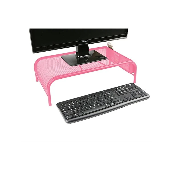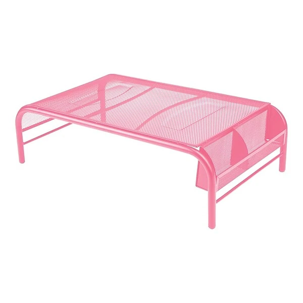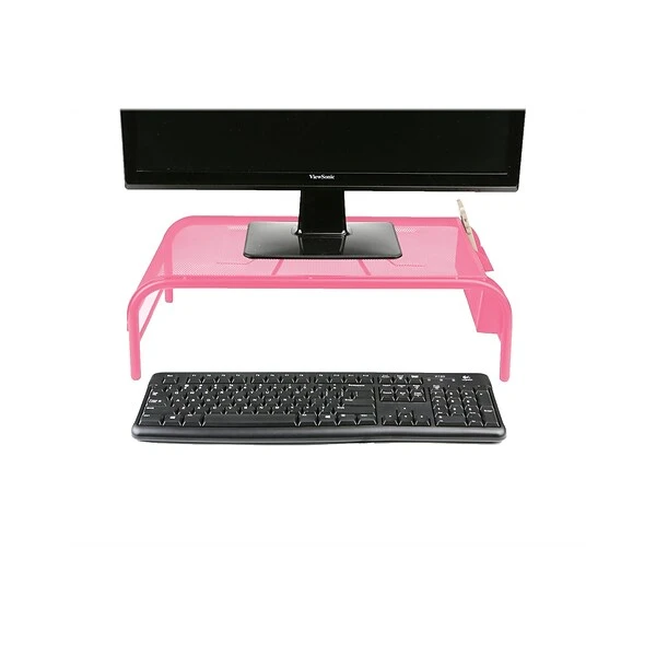Keep your monitor or laptop at your level for an easier view to reduce neck and eye straining. The metal mesh material allows for great stability and durability. It even has compartments on the side to put stationery items.