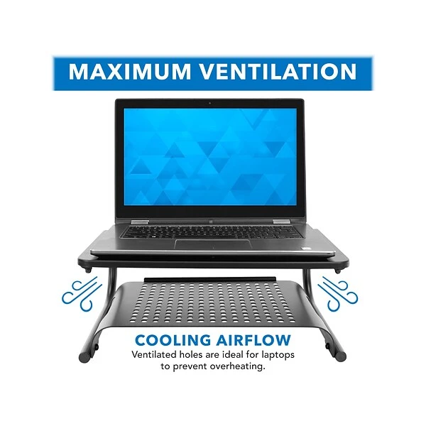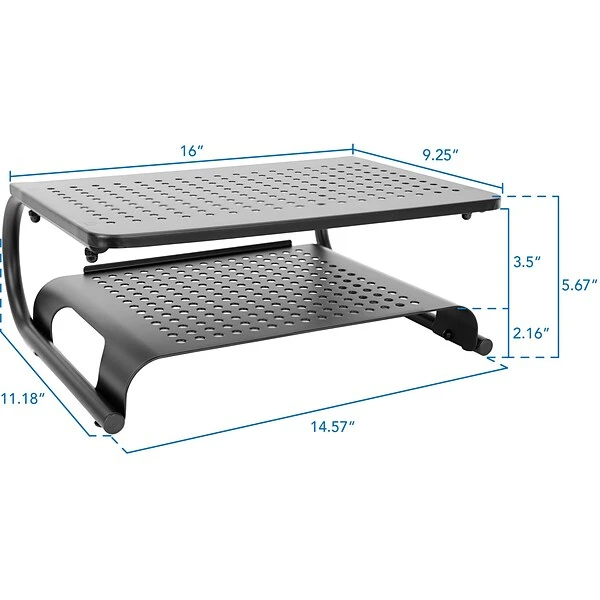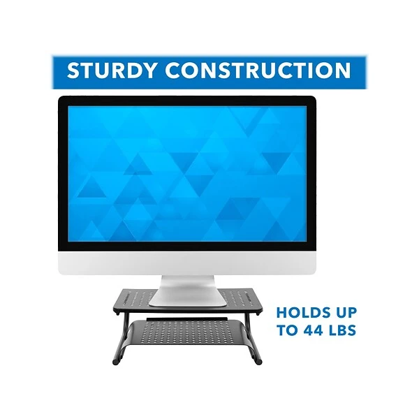 The Mount-It! MI-7361 slim metal riser will create a more ergonomic workspace with its extra shelf. Create more desk space by storing office essentials under the riser. The legs feature silicone pads that will protect your work surface from scratches. The sturdy stand can hold up to 44 lbs.