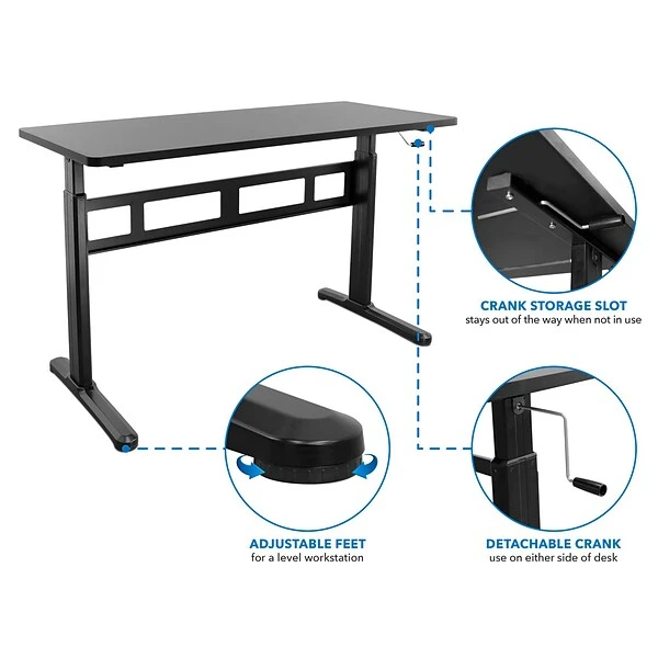 - Detachable crank use on either side of desk