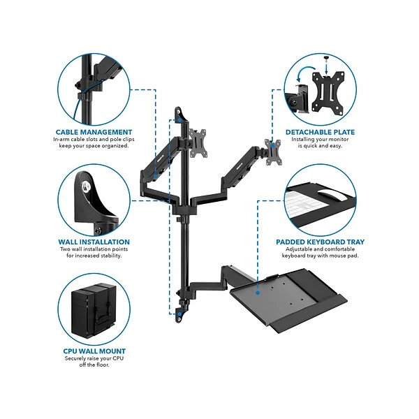 - Dual-monitor wall mount with PC holder and keyboard tray is a perfect addition to any workspace