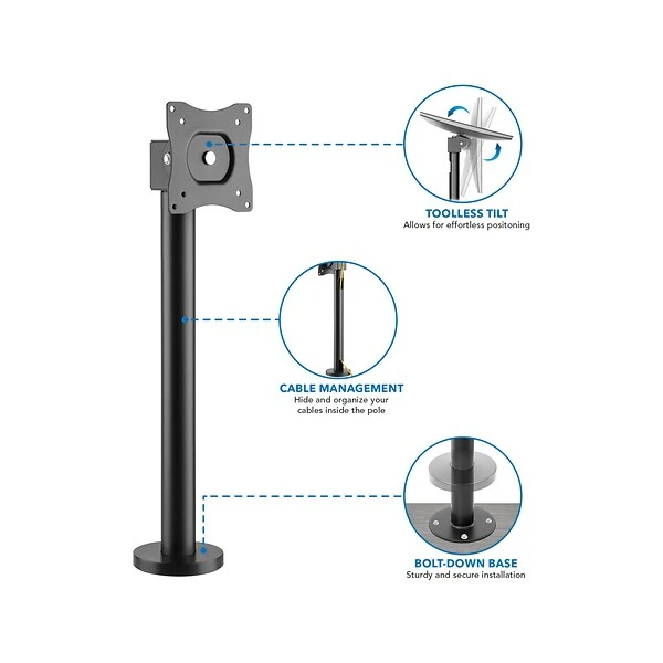 If you’re looking for a fully adjustable POS mounting solution for the monitor at checkout, look no further. Easily swivel it for 360 degrees. Tilt 45 degrees upwards and 15 degrees downwards to reduce glare. Rotate your POS mount from landscape to portrait mode with ease, making the payment process easier for both customers and cashiers. Securely attach the base to a countertop and protect cables by rubbing them inside the pole for a clean and organized workspace.