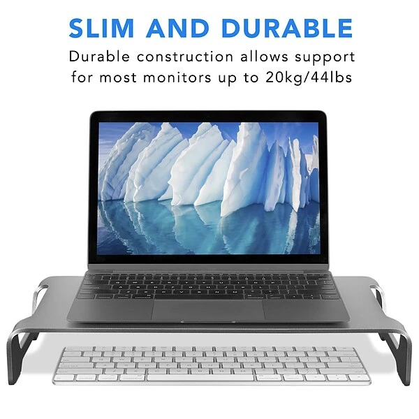 Sleek and elegant design. Our product is fabricated from same grade Aluminum as apple MacBook. Lightweight and stable. We incorporate smart weight reduction features into our design without compromising the stability and utility of the product. Safety. Anti-slip silicone tabs at bottom and top to securely hold your screen to the table. Durability. Scratch resistant Anodized Aluminum to improve the lifecycle of our product. Utility. Careful cutouts in frame to bundle wires and cables without cluttering your desk.