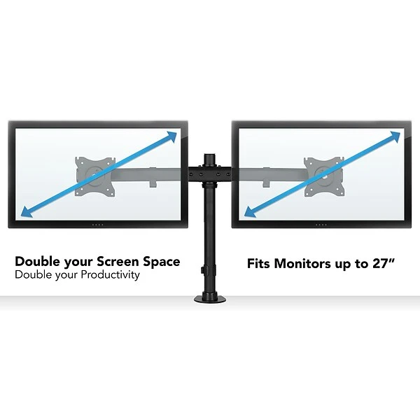 Mount-It! Dual monitor desk mount raises two displays off the desk surface, thus saving workspace and creating a productive display configuration to increase productivity.allows you to use two monitors side by side to increase your productivity. Raising the monitors to an ergonomic height improves posture to help prevent eye, back and next strain caused by incorrect postures. Several height levels of this monitor mount will allow you to choose the right height for the optimal posture. The curved bar allows the monitors to slightly face each other to create a more immersive viewing experience – ideal for work or gaming. The horizontal bar is 31″ inches wide and allows you to easily connect two 27″ monitors side by side. The monitor mount is compatible with all monitor brands with standard bolt holes in the back. It can support VESA 75×75 (3″x3″ square hole pattern) and 100×100 (4″x4″ square hole pattern) configurations.