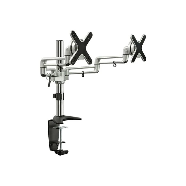 - Raise your monitor to a comfortable viewing height with this dual monitor desk mount
