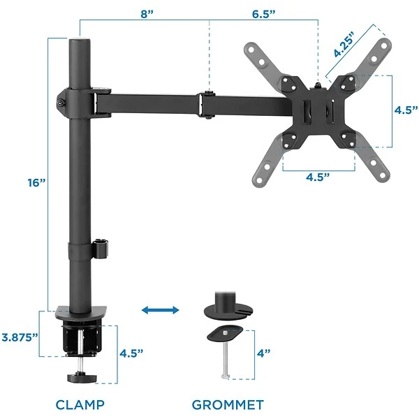 Mount-It! Large Monitor Desk mount was designed for larger monitors and TVs. Its VESA 200×200 and 200×100 bolting patterns makes it compatible with larger and ultrawide monitors in the size range of 34, 35, 37, 38, 40 and 42 inches. This monitor mount can even be used to install a TV to a desktop for improved safety. Most monitor desk mounts on the market only have VESA 100×100 bolting pattern and are too small to connect to the newer and larger monitors on the market. By elevating the monitor from the tabletop, users can achieve a more ergonomic posture that reduces back and neck pain. Raising a larger monitor off of your desktop also creates more space.
