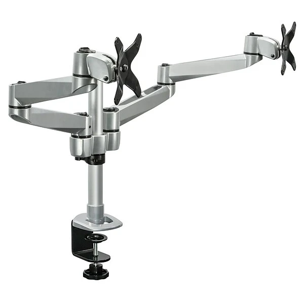 MI-43116 dual monitor mount features two full motion arms to create a more customized workspace. The extra long mounting pole measures 20.5”, allowing for a large height adjustment range. From height adjustment, to monitor tilt, swivel and rotation, this monitor desk mount is designed to maximize the user’s efficiency and comfort. Boost productivity and enhance workflow with double the screen space, while improving posture and clearing up more desk space by elevating the monitors. This premium dual monitor mount is fully TAA (Trade Agreements Act) compliant and is suited for purchase by the U.S. government. It is a modular monitor mount, meaning it is fully customizable with the ability to add or remove monitor-mounting arms, which allows an organization to develop cost-effective, tailored solutions for their employees’ needs. The c-clamp base easily attaches to any desk measuring.79” to 2.36” thick, making it an easy addition to any workspace. The heavy-duty aluminum construction is designed to withstand heavy-use and to withstand the test of time. Each arm can carry monitors measuring in size up to 32” and up to 19.8lbs per mounting arm.