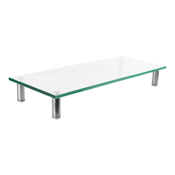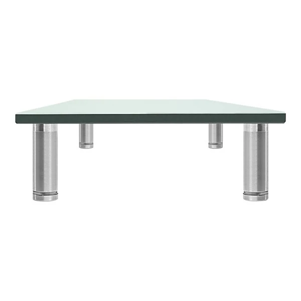 Mount-It! MI-7260 is a height adjustable stylish glass and aluminum LCD monitor/laptop/flat screen TV stand. This space-saving, adjustable sturdy stand will rise your LCD, LED display or your laptop up to 2.75 inches off your desktop, table, dresser, nightstand or counter-top, providing you an ergonomic viewing height. This durable, large platform stand will fit a majority of today’s LCD monitors and laptops that weigh up to 66 pounds. This stand has a 22 x 9 inch platform, with an optional drawer to help organize your desk as well as create space. This drawer can be used with two dividers to organize supplies, paper, files or you can use it as one large drawer. In addition, the drawer you can remove it and you this LCD monitor stand as a shelf, which gives you endless options of usage. This monitor stand can be used for a small flat screen TV, or in the kitchen as a space-saving shelf, since the four adjustable modular legs have rubber feet to prevent slippage or damage to your counter-top or furniture.