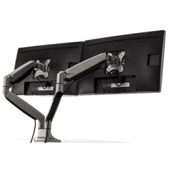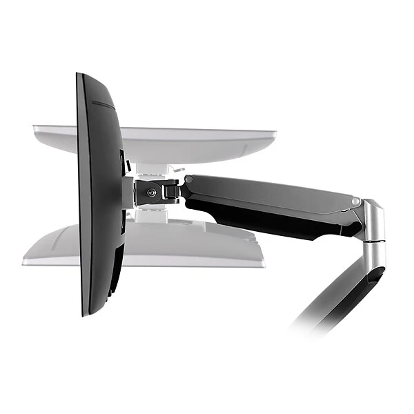 The MI-1772’s full motion arms swivel, tilt, rotate and move up and down to position the monitors just right for you. The gas spring mechanism includes an adjustable counterbalance so that you can make fluid and easy height adjustments to your screen and position your displays in the optimum viewing position. Rotate your screens between portrait and landscape mode to suit your workflow needs. Cable management sleeves offer a clean, clutter-free look so you can utilize your desk space more efficiently. The dual base allows supports clamp or grommet installations.